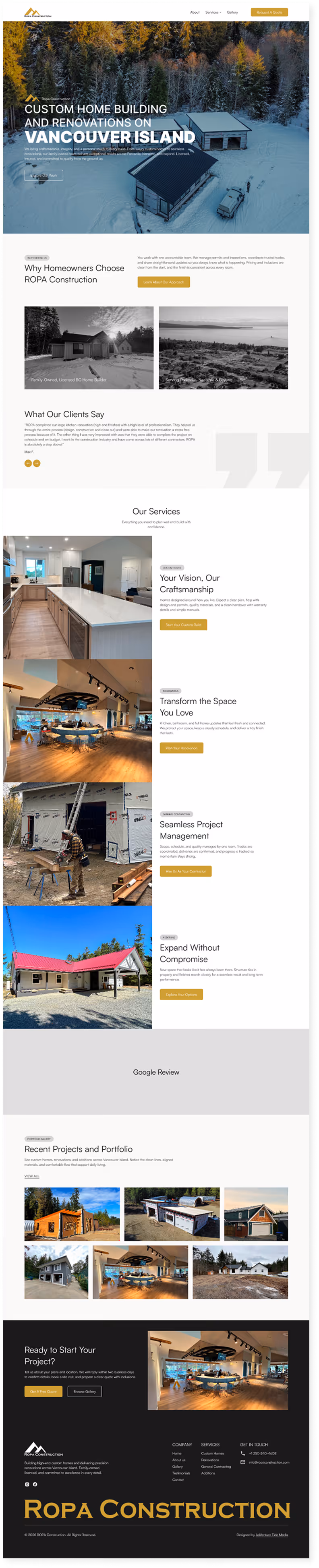 ROPA Construction needed a professional website that truly reflected the quality and precision of their work, as their previous online presence failed to showcase their craftsmanship or range of services. The goal was to build a new website from the ground up. One that not only mirrors ROPA’s reputation for excellence but also clearly outlines their offerings and presents their projects in an engaging way. The final result is a modern, responsive website that embodies the brand’s values of professionalism and attention to detail, featuring clear service pages, strong visuals, and intuitive navigation that instils confidence in prospective clients.