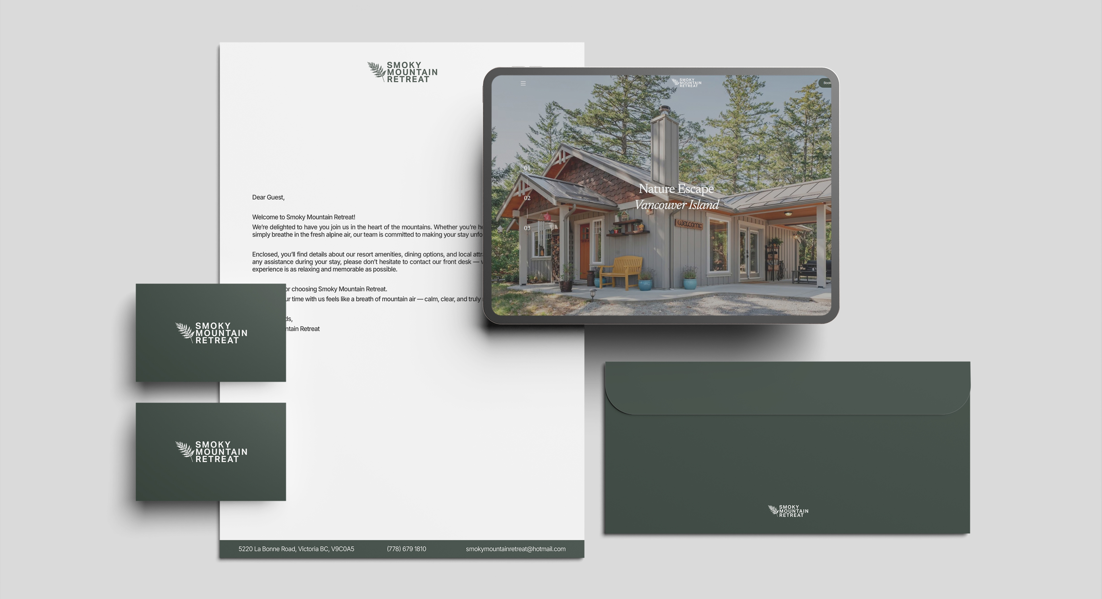 Our art direction focused on blending the rustic charm of the Smoky Mountains with the elegance of a modern resort experience. Every visual element—from the colour palette inspired by misty peaks and pine forests to the carefully curated photography—was designed to evoke a sense of tranquillity and adventure. The result is a cohesive aesthetic that captures the resort’s spirit of comfort, nature, and elevated escape.